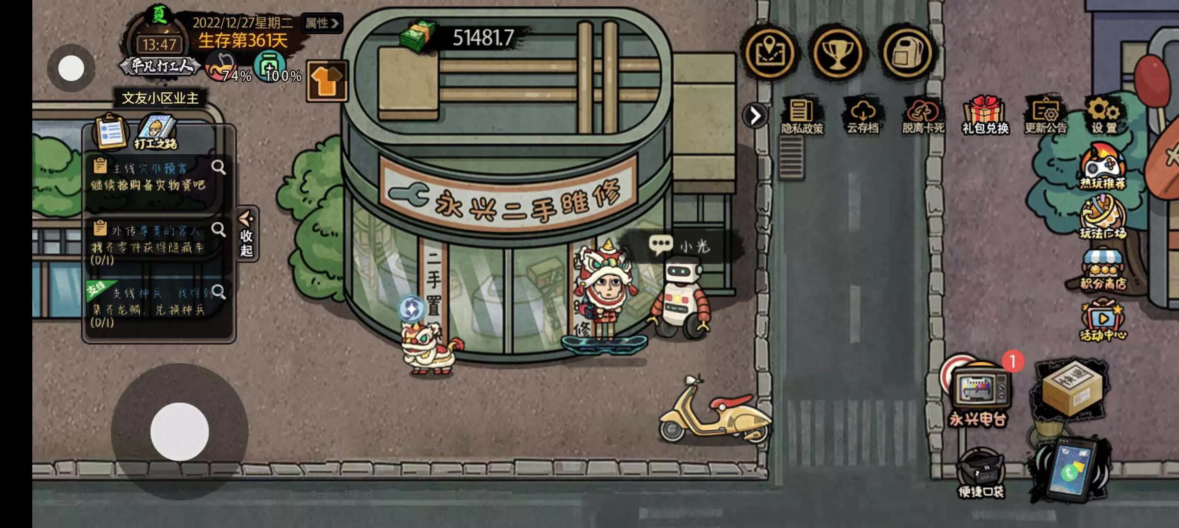 宝子们,灾难物质捐赠的维修店小光怎么没反应?