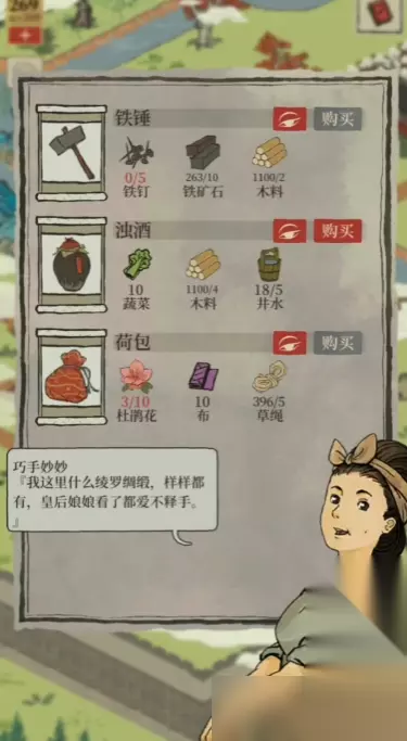 兑换铁锤需要提前准备好特定的材料。每次兑换需要消耗5个铁钉、10个铁矿石以及2个木料。铁钉和铁矿石主要通过采集游戏中的巨石或丑石来获得,而木料则通过砍伐树木来收集。在前往秦淮河畔之前,务必检查背包里的材料是否足够,避免白跑一趟。
