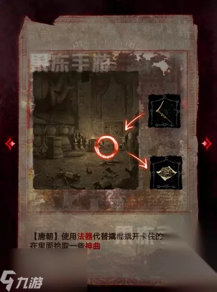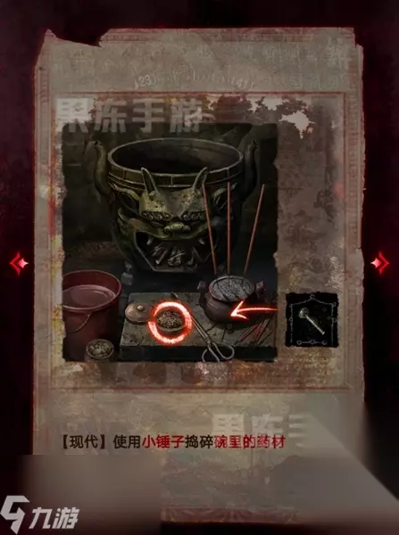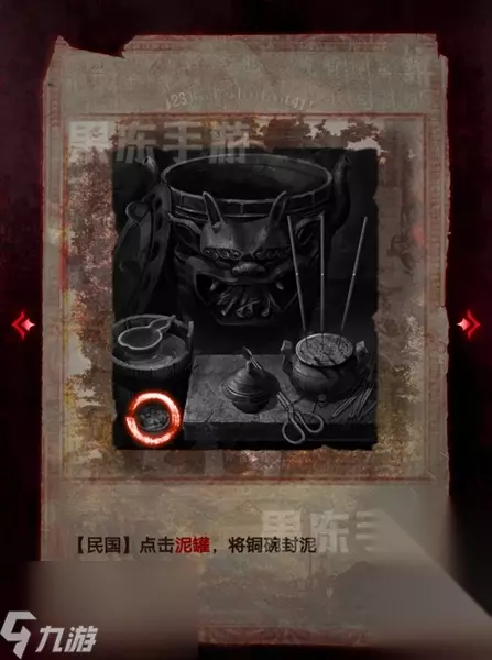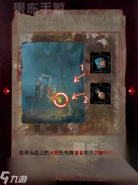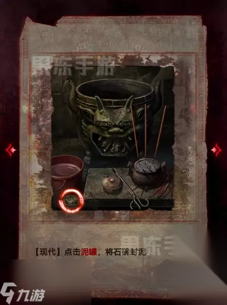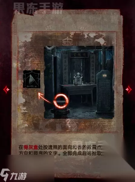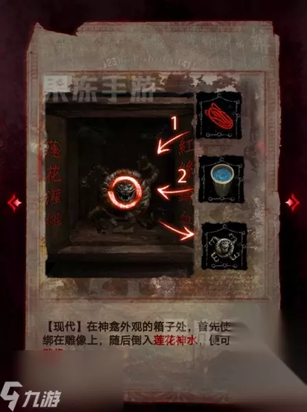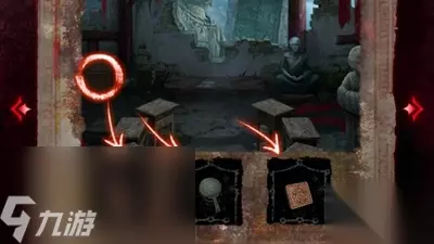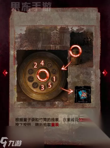 14、接着根据童子录和竹简的线索,在翁棺处按照图中顺序按下按钮,就能拾取其中的童装。