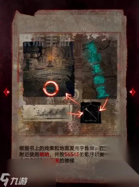 9、随后根据书上的线索和地面发光字的线索,在附近使用唢呐,按照56545的顺序吹奏,就可以开启进入浊门殿的楼梯。