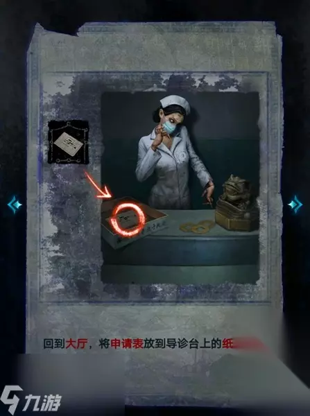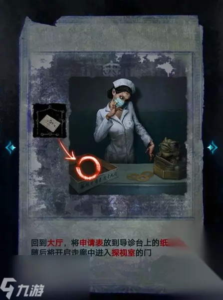 10、写完申请表后,将表放到前台的纸盒中,随后护士人偶就会为玩家开启走廊中进入探视室的门。