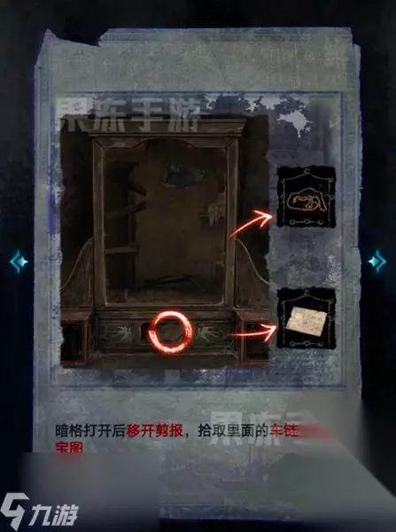 10、通过小游戏后,就可以打开暗格,拿到剪报和其中的车链子以及藏宝图。