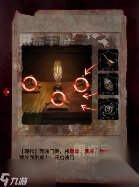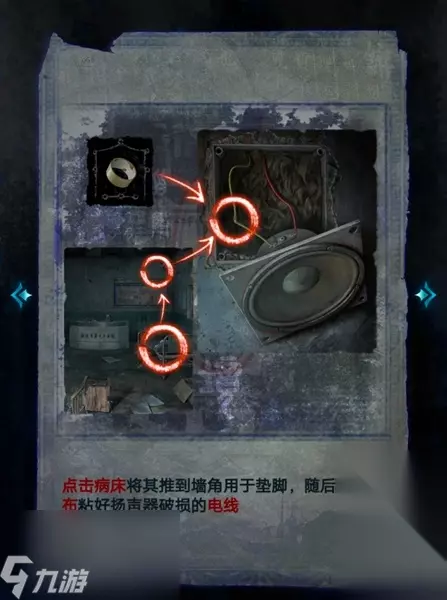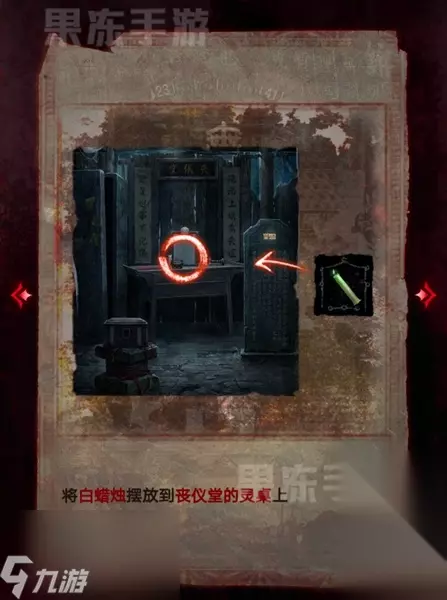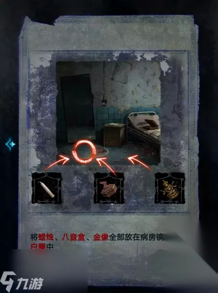 25、接着返回病房,将蜡烛、八音盒、金佛像放入镜子前的白圈中,就可以通过第一章了。