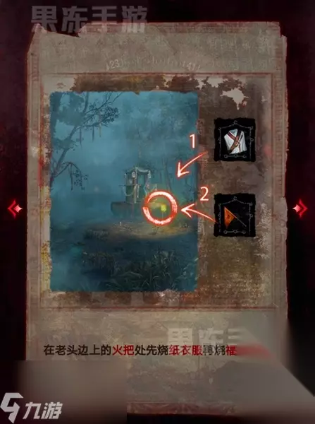 23、老肖:返回村庄废墟,使用火把烧掉小庙,随后可以拾取石人手中弓箭。