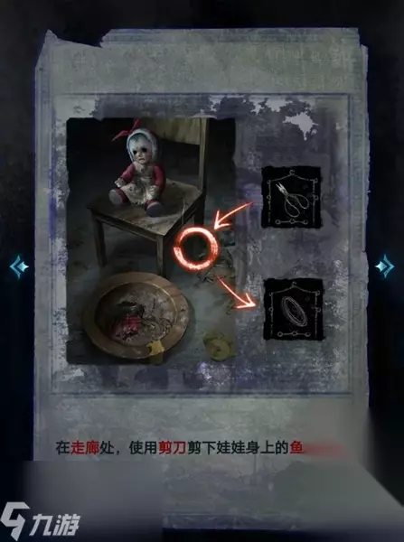 11、在进入探视室前,用剪刀剪下走廊娃娃身上的鱼线。