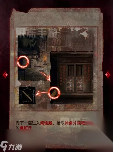 4、接着前往下一层的闻谕殿,拾取神龛外观箱子边上的鲁班尺。