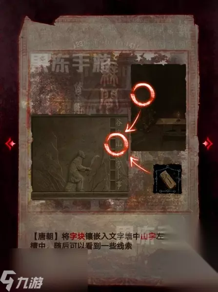 33、将字块嵌入文字墙中山字左边的凹槽中,随后可以获得线索。