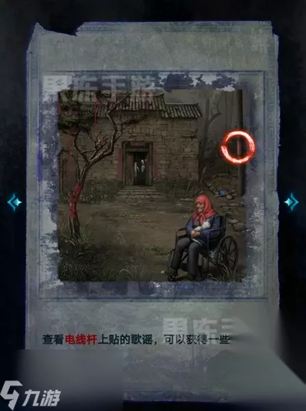 2、在脱离环境回到村子后,点击电线杆上的歌谣,获取线索。