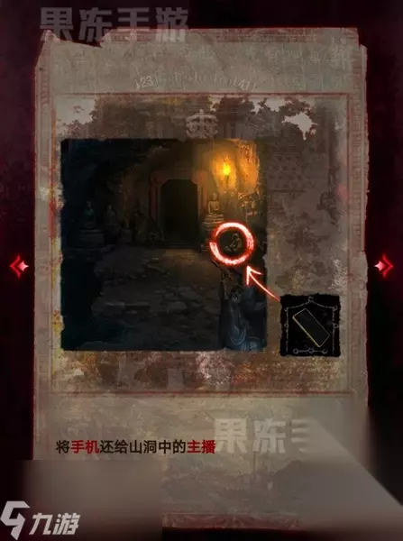 19、返回山洞处,将手机还给主播。