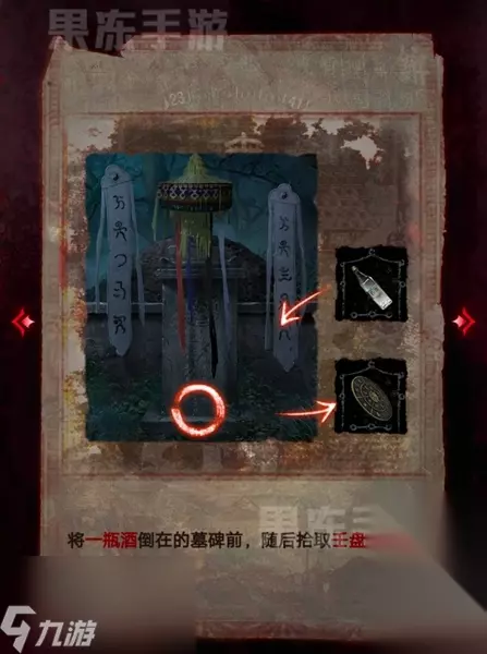 23、在使用手机后就会出现一块墓碑,将酒倒在墓碑前可以获得壬盘。