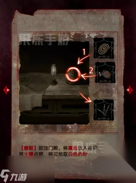 44、切换唐朝,来到浊门殿,将熏香放入香炉,随后点燃,拾取白色的针。