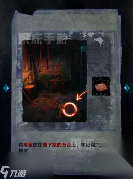 22、老肖:将寺庙金雕摆到书架的垫子上,随后在书中找到咒符。