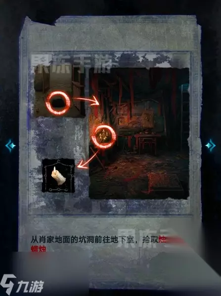 19、接着从坑洞前往地下室,拾取烛台上的蜡烛。