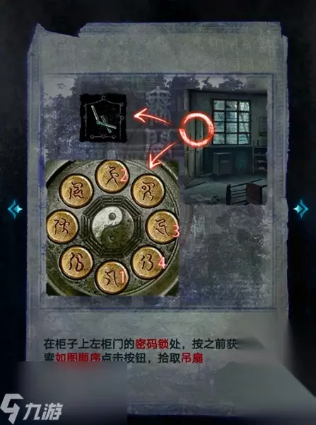 14、随后点击柜子上的左柜门,监视密码锁,用之前获得的线索解开密码锁,获取吊扇。