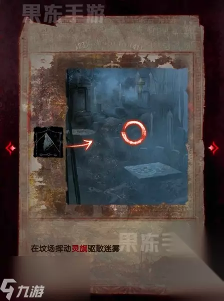 38、离开丧仪堂来到坟场,使用灵旗就可以驱散迷雾。