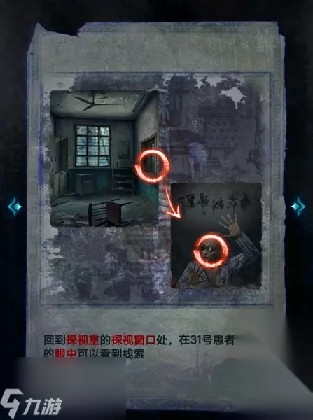 23、接着回到探视室,通过观察31号病患木偶的眼球,玩家可以得到保险箱的线索。