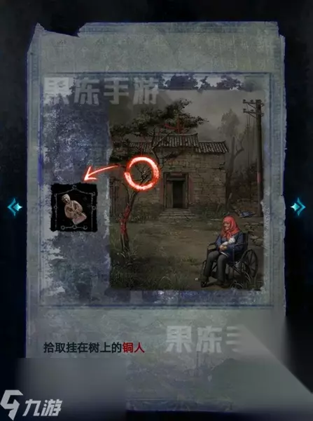 14、随后回到村子中,拾取树上的铜人。