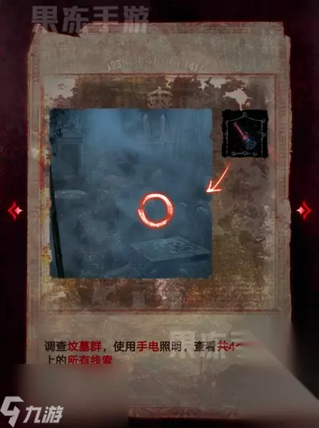 3、接着用手电查看地上4个坟碑的线索。
