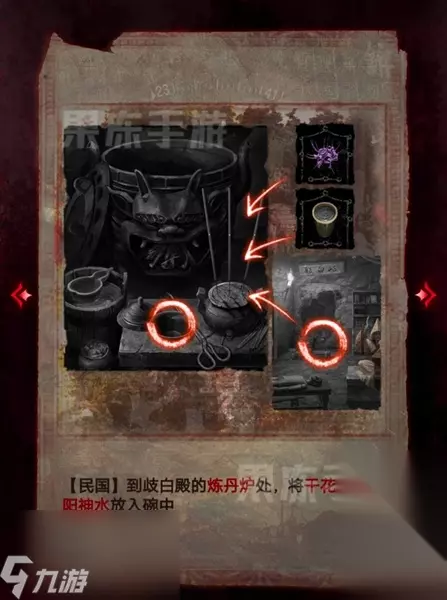纸嫁衣6无间梦境第四章通关攻略: 1、首先查看老头身后的书架,从一本炼丹书上获取线索。