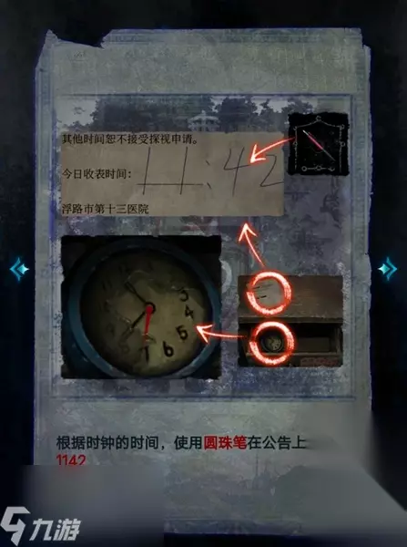 9、此时玩家需要根据时钟的时间来填写正确的收表时间,圆珠笔在之前的前台处拾取。