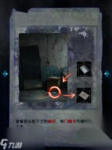21、接着查看床头柜下面的病历,用门禁卡代替照片粘上去,就可以获得探视申请表。