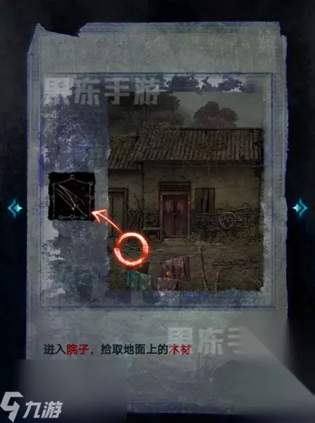 4、接着进入院子中,拾取左边地上的木材。