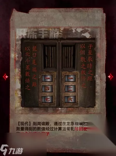 48、回到现代,在闻谕殿用龙浮雕和漏刻的数据获取密码,打开箱子。