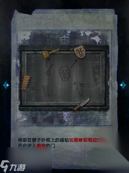 19、之后将吸在窗子外框上的磁贴移动到图中的位置,就可以开启病房的门。