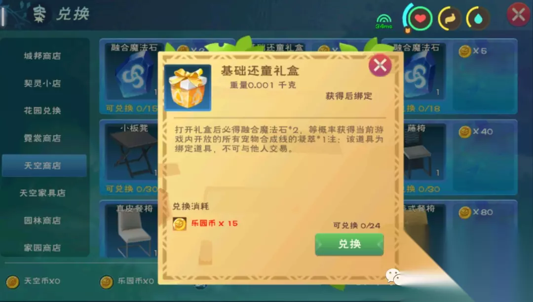 NO.3 培养材料获取 魔法融合石:融合宠物的必要材料,可以通过参加各种副本活动获得兑换币在兑换商店中兑换,其中家园副本是获取效率最高的,只需要每周挑战一次即可最高获得400乐园币,40家园币。菇灵荆怪凝萃:在融合宠物的过程中,战斗型宠物通常会出现变异的情况,变异之后需要修复才能进行融合或进化,而凝萃是修复变异宠物的初级道具。同样是在兑换商店中获取,通过购买基础还童礼盒有概率开出菇灵荆怪凝萃。