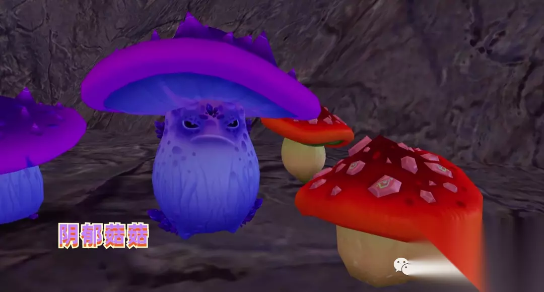 阴郁菇菇,60级,分布于熔岩暗湖,刷新时间约为8小时,存在波动,外形为一只紫色的大蘑菇,与阴郁菇难以区分,当玩家靠近时,会对玩家发动攻击。