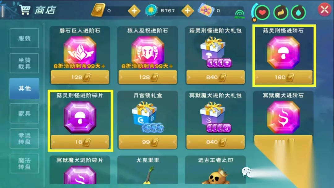 菇灵荆怪进阶石:菇灵荆怪进阶3-6阶必要材料,3阶需要12个,4阶需要25个,5阶需要30个,6阶需要35个,累计102个。目前菇灵荆怪进阶石主要通过商城购买,160点卷/个,推荐有优惠折扣的时候购买,毕竟进阶花费还是有些大的。