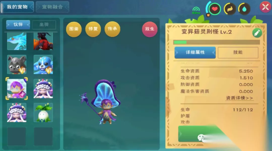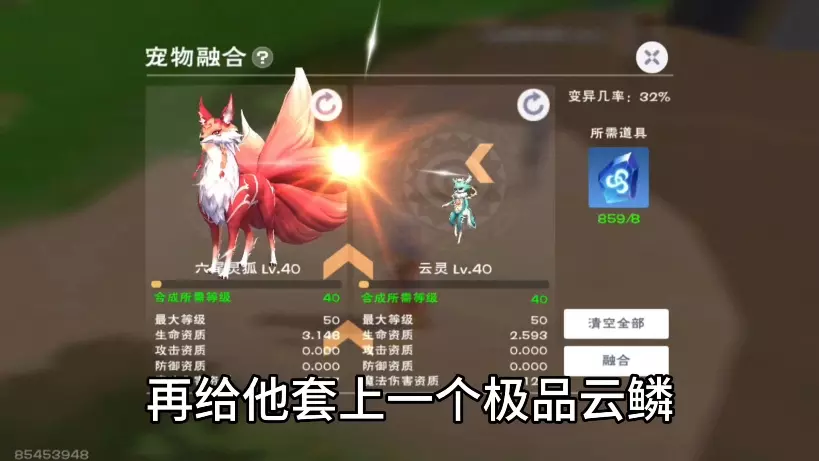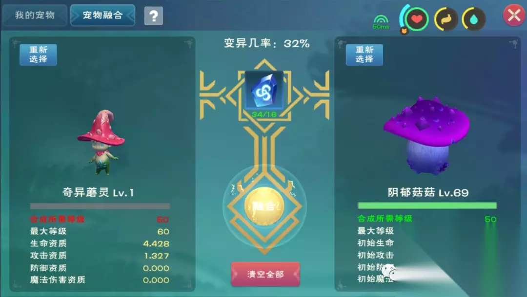融合经验:就目前来看菇灵荆怪的融合规律来看,最后结果是否可6,属性是否优秀,主要看融合材料宠物的资质以及融合是否变异这两个因素。