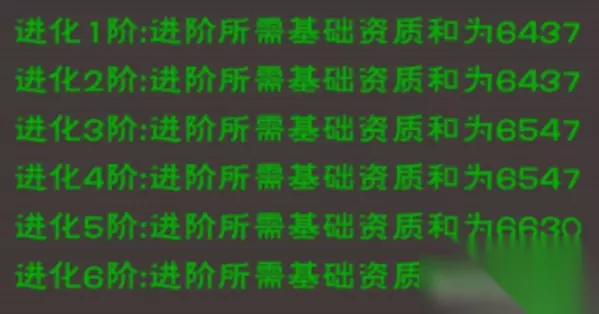 进阶资质要求:基础资质=(生命初始资质+攻击初始资质)×1000