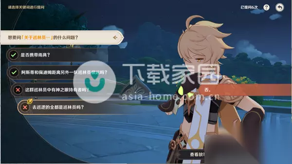 【】 原神追溯求真任务攻略 原神追溯求真之一怎么选 追溯求真之一问答选择攻略: 1、你开始提问,选择关于巡林员的问题。