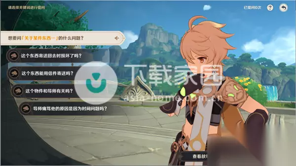 原神追溯求真之二答案分享 追溯求真之二问答图文攻略: 1、点击查看故事,选择关于某件东西。