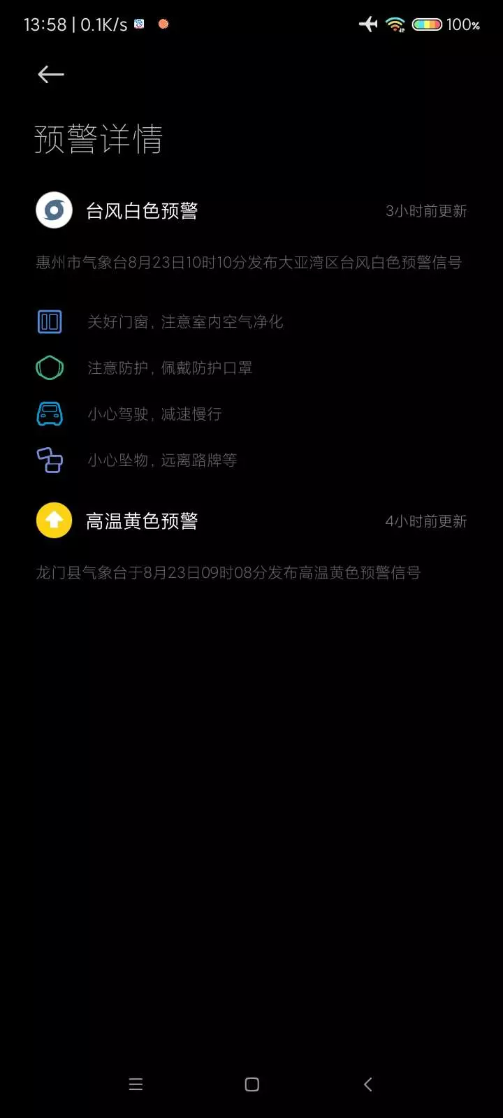 我没想到干出台风预警来了,还带了个黄色高温预警。再说了,我们这也没台风啊