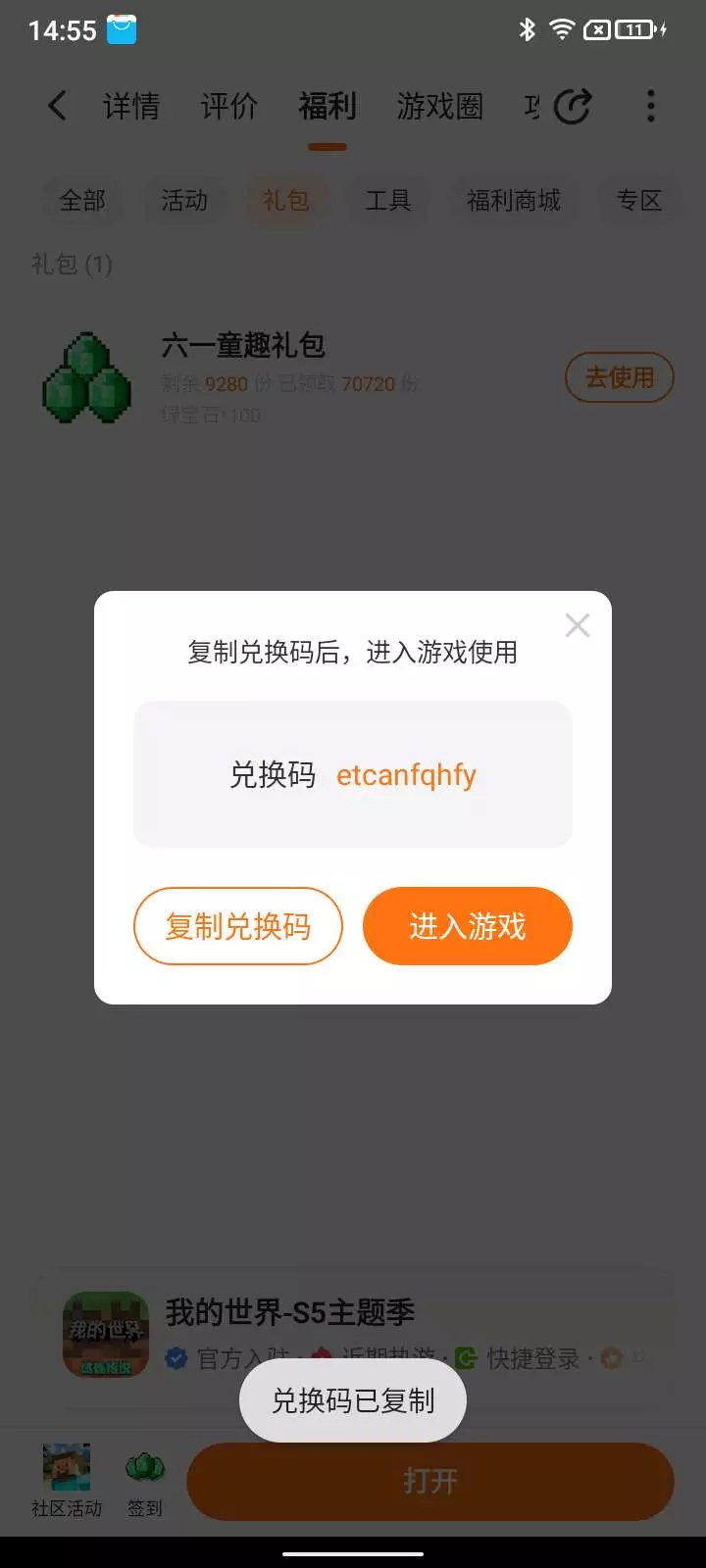 发现了兑换码!