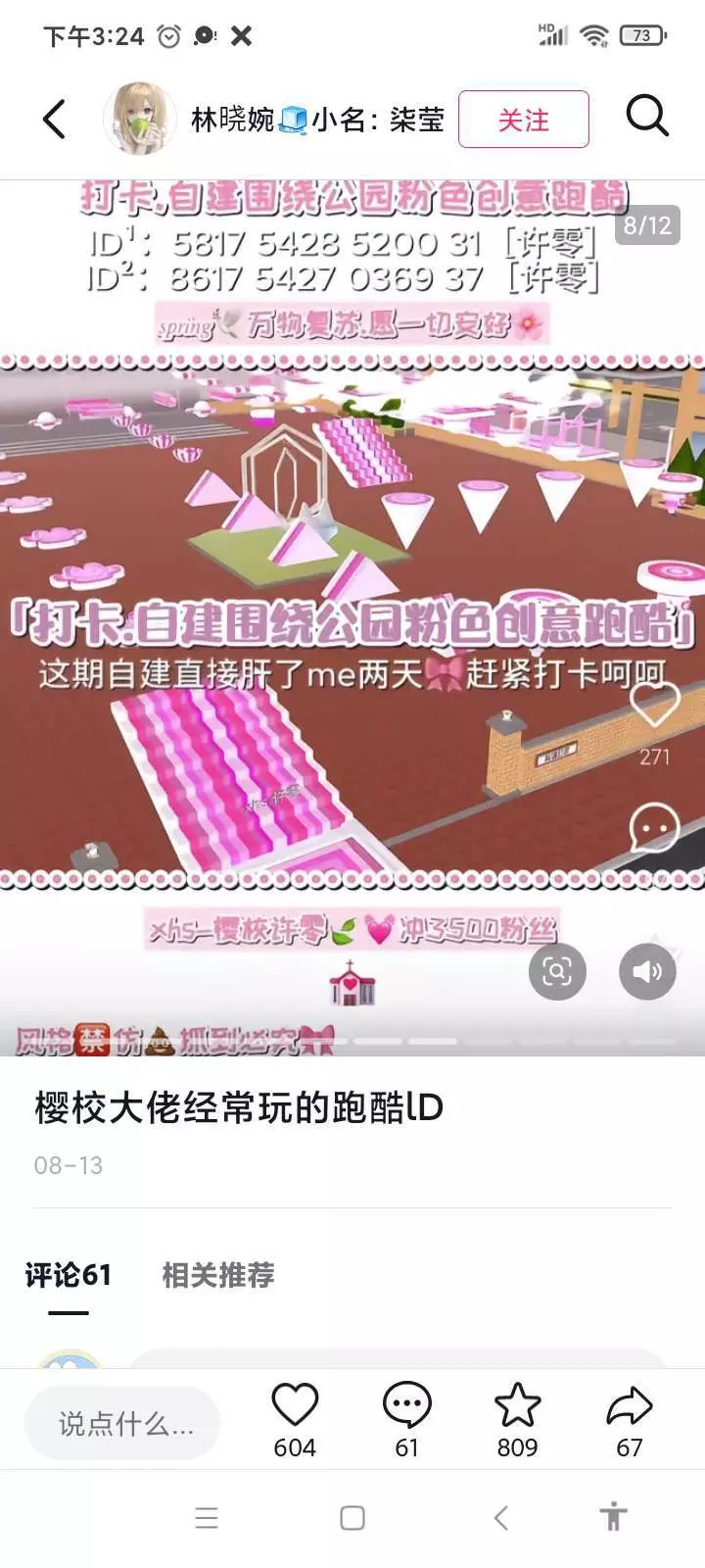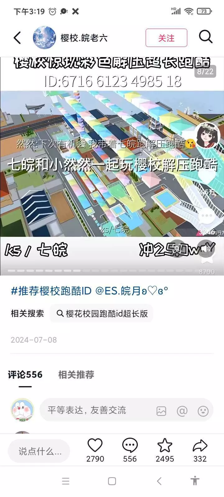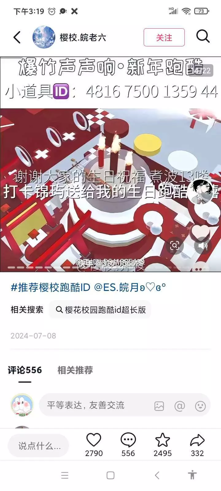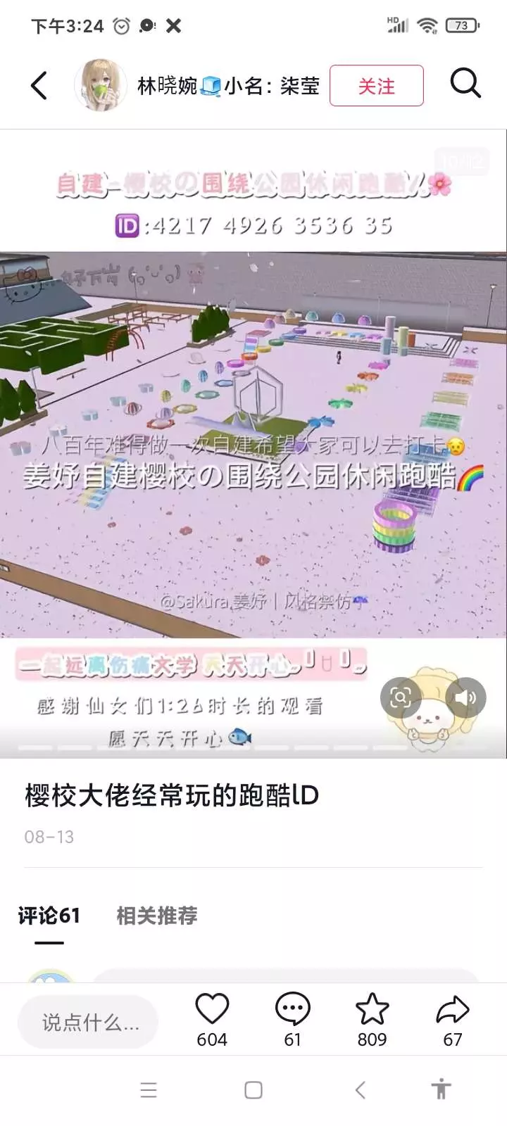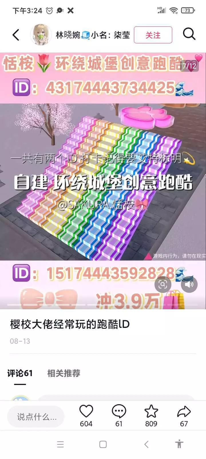 分享樱校神仙跑酷ID
