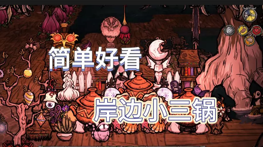 这是玩家分享的自制饥荒建家作品,展示了搭建完成的海上假日餐厅场景,该海上餐厅建在海面之上,搭配石质围栏与装饰,设计精巧有氛围感。