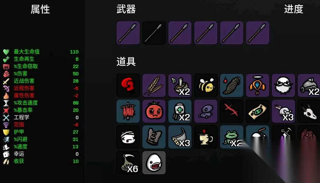 该武器也有一些缺点,就是攻击频率不高,想要解决这个问题,就需要角色拥有足够高的速度,这样角色移动的时候能增加长矛的覆盖范围,这样就能打到更多的怪物,从而弥补攻击速度的不足。 大嗓门的属性推荐为移速,护甲,闪避等,基本上是生存类的属性,攻击属性对于大嗓门不是特别重要。