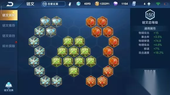 首先是铭文出装的选择上。 玄策有两种打法。1 技能衔接平a的普攻穿透流 2 暴击流 穿透流的优点是装备成型快,不依赖运气上的暴击伤害,高端局更实用并且更吃操作。 暴力流的优点则是后期伤害高,打团平a就行。缺点是装备成型慢,并不实用于节奏快的战场。 穿透流铭文:7红月3异变 10鹰眼 3夺萃7狩猎 出装:红色打野刀 攻速鞋 小吸血刀(出完宗师后合成大吸血)黑切 宗师 名刀 图为穿透流铭文
