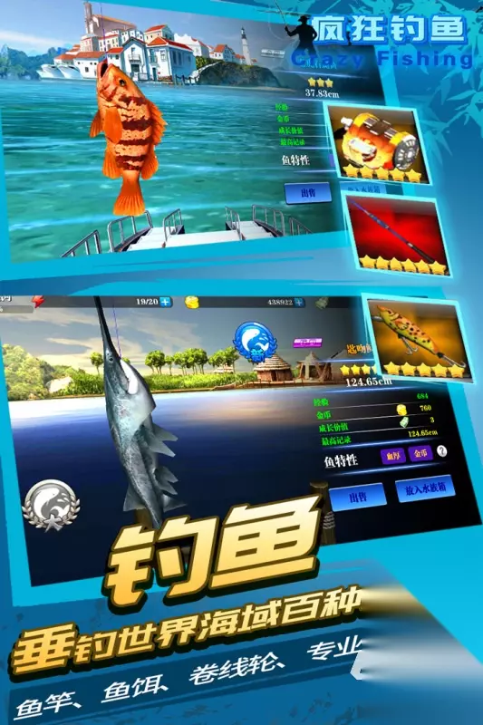 《暴爽疯狂赛车》游戏的疯狂设定在于,在于针对赛道进行了一种另辟蹊径的刺激性设立,其次在各种洋洋大观的赛车种类上, 又对车辆进行了各种奇异怪的能力设定,精心规划了三大类,在场景和游戏形式上万别千差的模式类型,而且针对赛车的尾气包括加速时的特征表现,都运用一种超绚烂的动画效果加持。 高速下载 普通下载 优先233乐园APP下载 3、《疯狂钓鱼》
