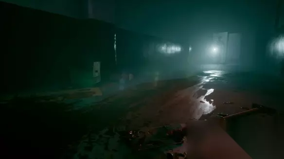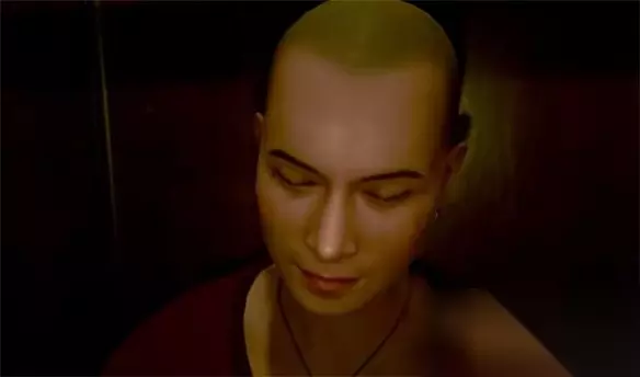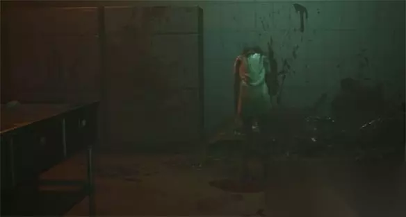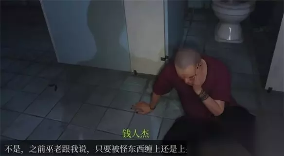 一段剧情后主角除了游戏房,在门外跟随绿光前进,来到一个厕所里,一个隔间里的人突然出现。