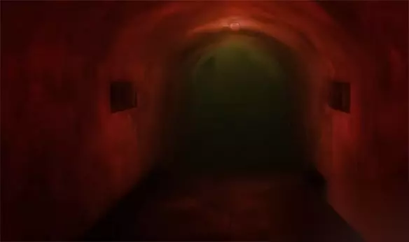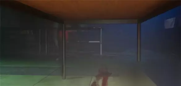 顺着楼道的方向走,能发现一个电梯,这里的电梯也是看不清楼层,出来后回来到一个光怪陆离的地方。
