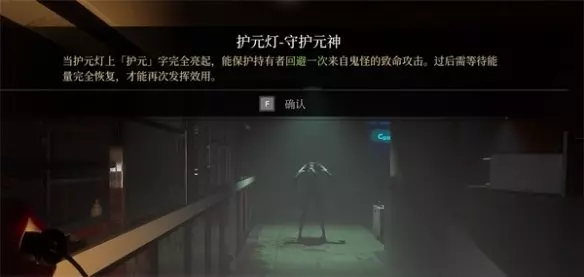 护元灯长按空格键可以探查找到隐藏的文字和脚印,这里跟随指引来到二楼电梯处,用护元灯驱散电梯门口的阴气。