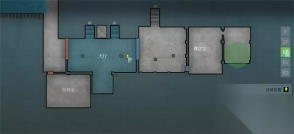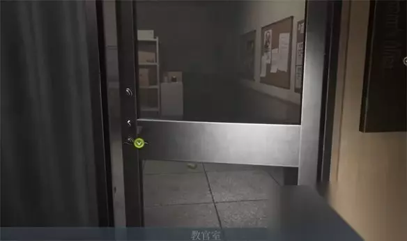 通道尽头有个电梯,这里选择去1层,出来后触发剧情,得知资料室的钥匙在教官室。