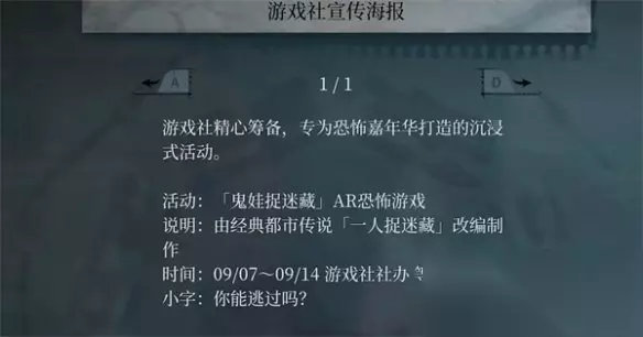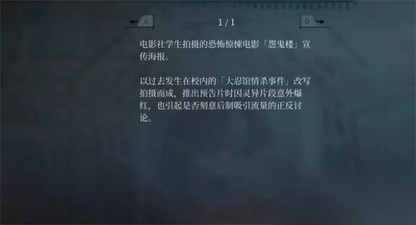 各具特色、形象鲜明的角色与鬼怪,通过生动丰富的演出手法,营造出既搞笑又惊悚的独特恐怖感官体验。 巧妙融合现代真实校园恐怖传说与当地文化、民俗习惯,结合本土学校的特色建筑、生活场景,让玩家能够以第一人称视角亲身穿梭其间,深刻感受到令人不寒而栗的校园恐怖氛围。 第一章文华失踪疑案 游戏的最开始有一个过场动画,这个和剧情是有很大联系的,文华大学的大忍馆里究竟藏着多少秘密,还需要玩家和主角深度挖掘。
