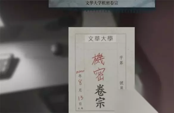 在资料室的办公桌里能获得文华大学机密卷宗,画旁边的保险柜输入0706拿到事件录像带。