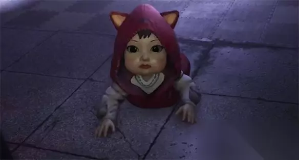 近距离观察的结果就是被追杀,主角这时要赶紧跑,女鬼的追击还是很久的,跑到一个木门进入出现两个小人就结束了。