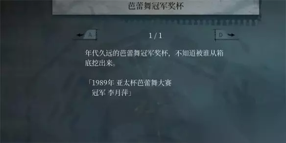 主角用钥匙打开仓库的门进去查探,发现了芭蕾舞冠军奖杯、社团使用规则、芭蕾皇冠和破损的合照。